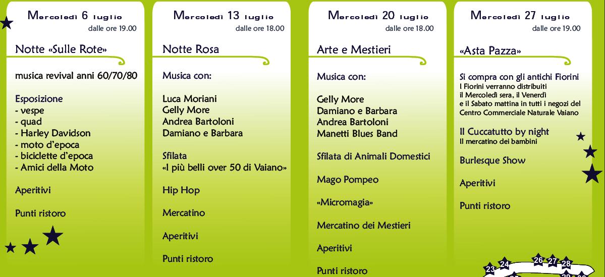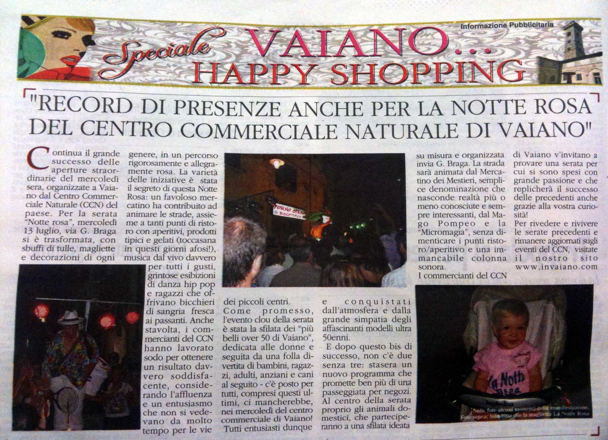 Altro straordinario successo di pubblico nel secondo mercoledi (13 luglio 2011) di HAPPY SHOPPING. La serata è stata caratterizzata dalla sfilata OVER 50 di alcuni esemplari originali di maschi Vaianesi.